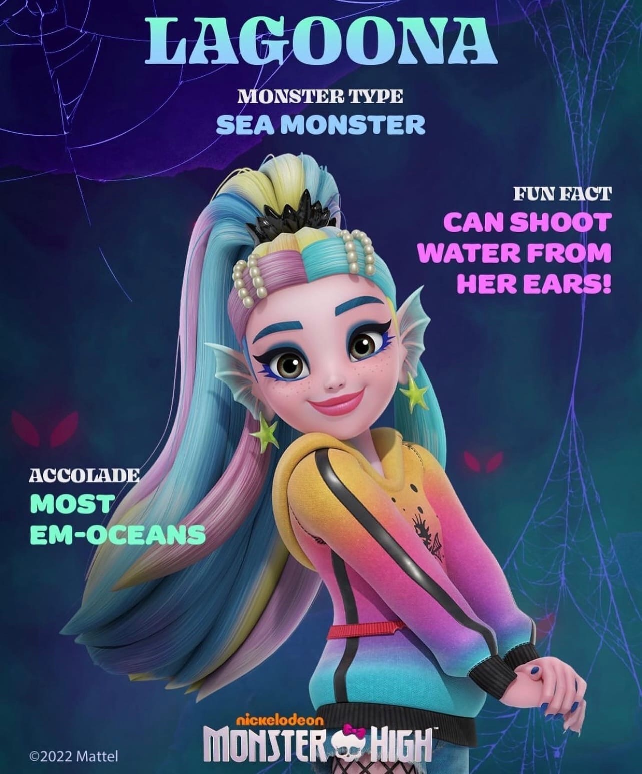 Валерия Родригес в роли Лагуны Блю - выросшая в древнем подводном майя-кастильо мире с матерью нимфой и отцом морским чудовищем, милая, но свирепая Лагуна мало что знает о жизни на суше.