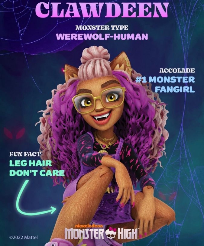 Габриэль Неваех Грин в роли Клодин Вульф - получеловек и полуоборотень, Клодин с радостью присоединяется к Монстр Хай, несмотря на трудности, связанные с тем, что она полумонстр в школе, где учатся настоящие полноценные монстры.