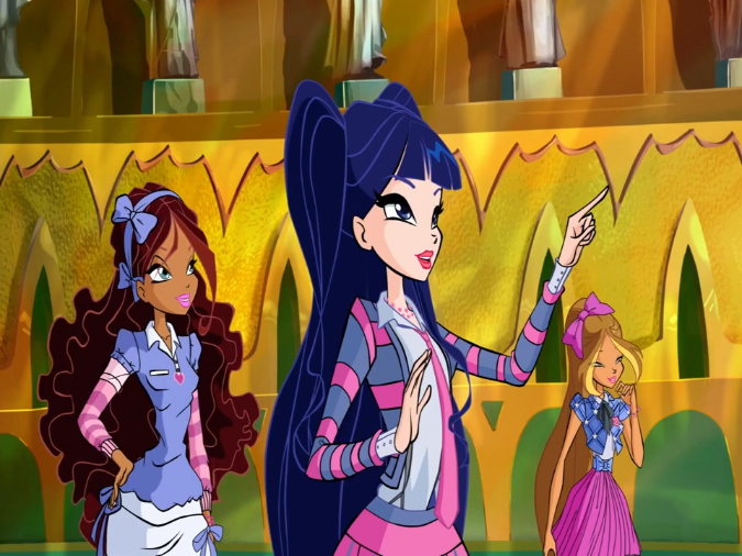Далее следует встреча двух старых подруг - Дафны и Диледы - директора школы, и Диледа просит Дафну о приватной беседе, не забывая поприветствовать Винкс.