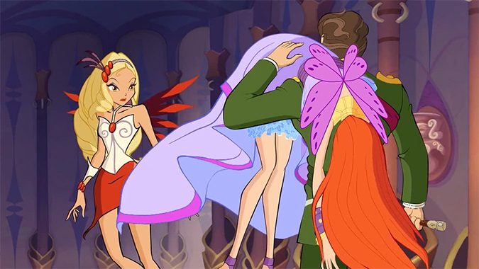 Блум удивляется и расстраивается, но на какое то время забывает эти слова Ская. Они начинают танцевать вместе с парой Дафны и Торена, а Амур вдохновленная этим романтичным танцем отправляет пары танцевать в воздухе.