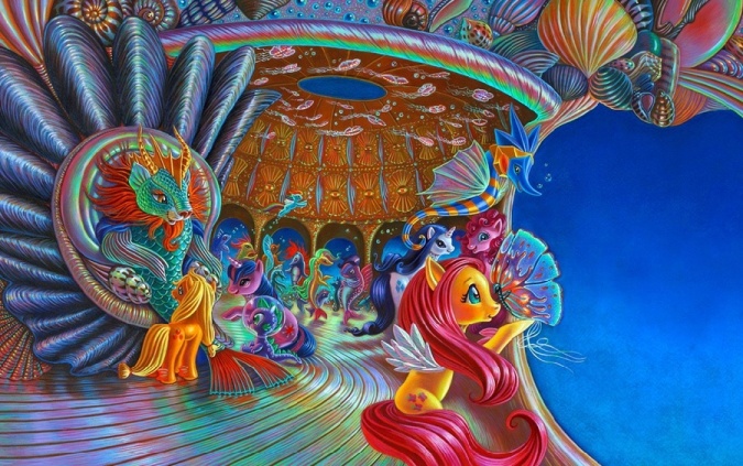 Under the Sparkling Sea - название одной из новых книг про пони из сериала Дружба это Чудо. Иллюстрации к этой книге нарисованы в ручную, как видишь, работа над одной иллюстрацией заняла 7 полноценных дней работы.