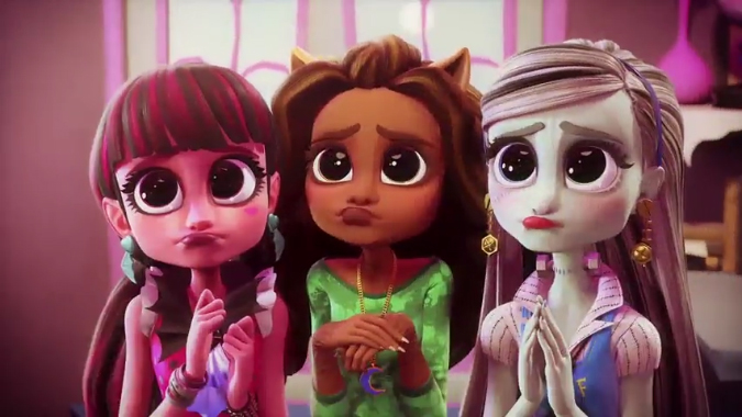 Видео доступно пока что только на английском, но новые кадры стоят того чтобы его посмотреть. Хотя бы ради момента где Дракулаура, Флодин и Фрэнки делают щенячьи глазки чтобы упросить папу Дракулауры разрешить Клодин жить в его замке вместе с Дракулаурой и Фрэнки.