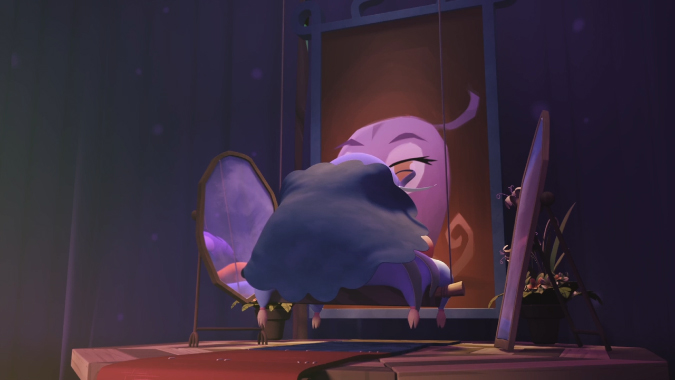 Все проснулись, все готовы к походу....или не все...Гейл все еще не проснулась. Обрати внимание, что у Гейл наблюдается явная мания величия. У нее практически нет никаких предметов в комнате, кроме огромного портрета самой Гейл в полный рост и двух зеркал рядом с кроватью. Сама Гейл мирно спит в центре этой странной композиции.