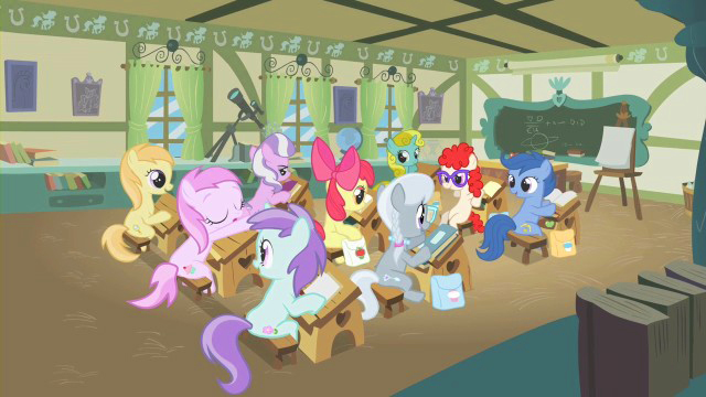 Вот, где-то в Поннивилле в классе мисс Черили меткоискатели тоже садяться за парты. Чему-то они уже научились за прошлые годы, но свое призвание так пока и не нашли.