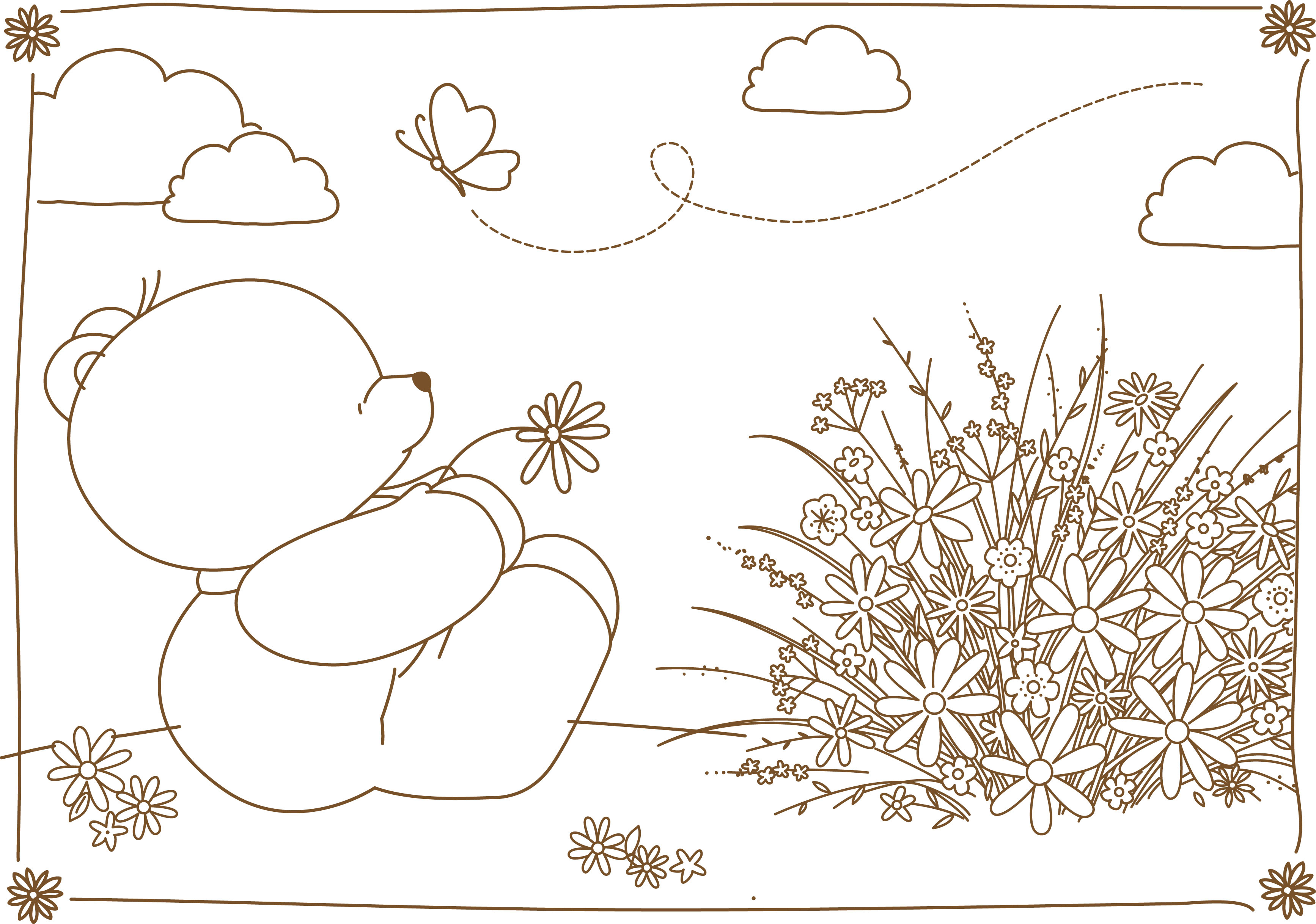 Некоторым мишкам на раскрасках нужно дорисовать глаза. И вам решать будет ли это девочка с ресничками или мальчик с округлыми глазками.