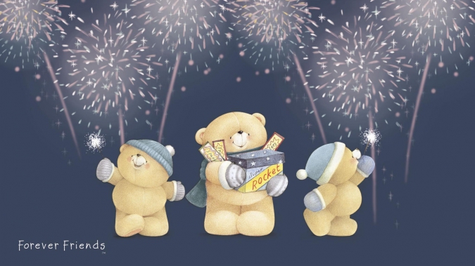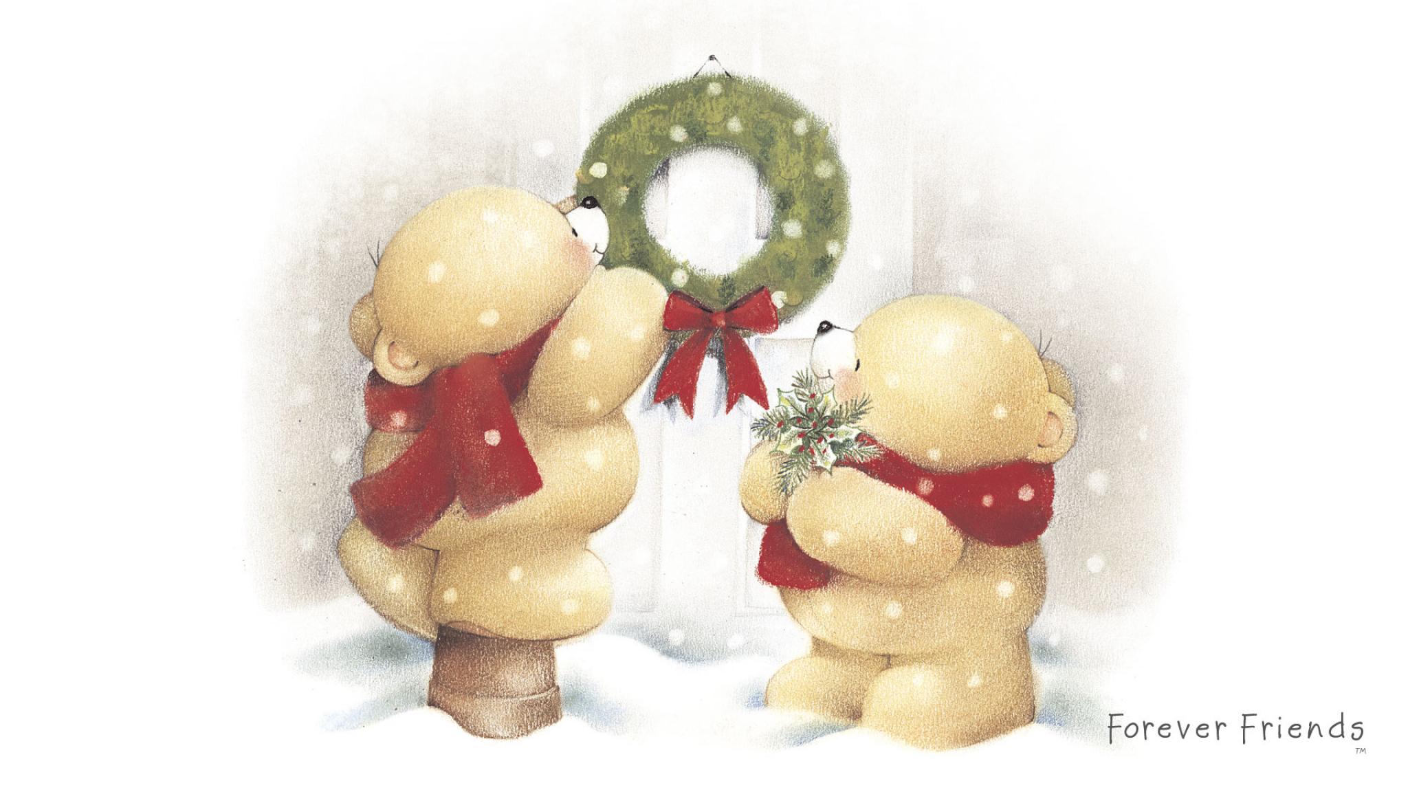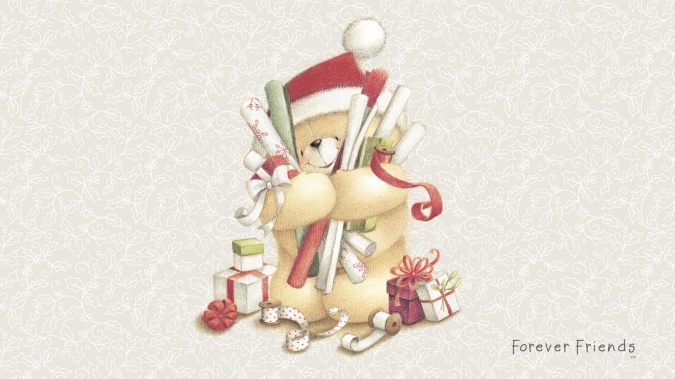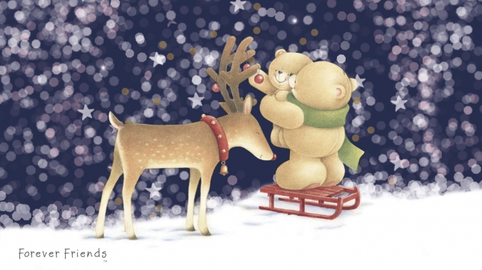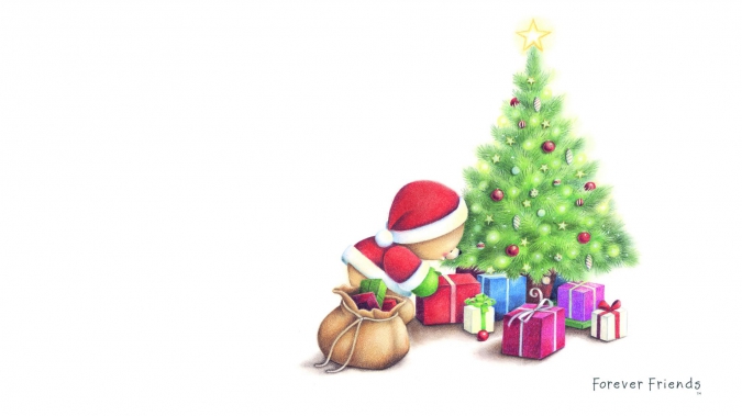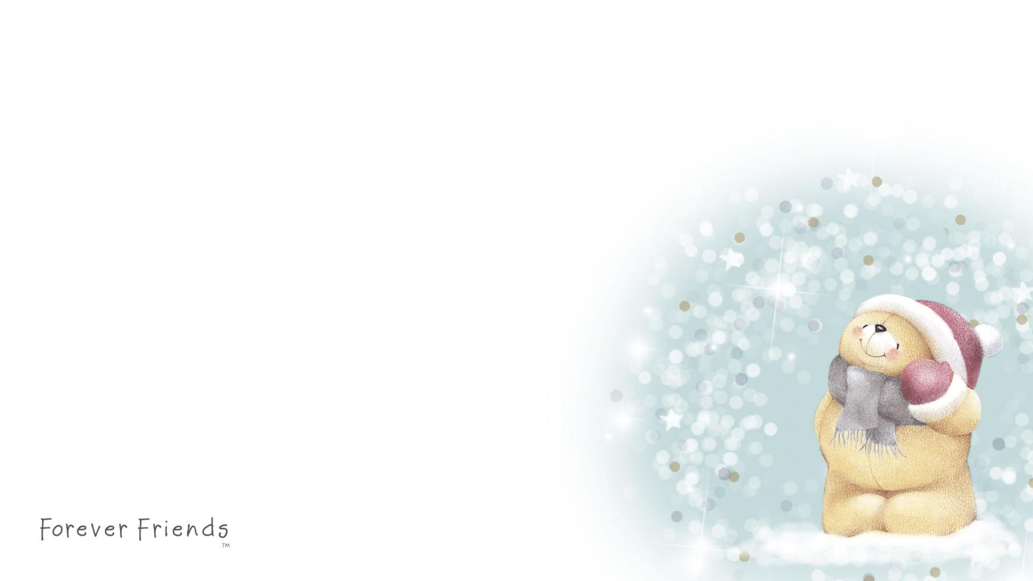 Мишки Forever Friends (Друзья Навсегда) очень любят зиму, и конечно же они с нетерпением ждут Новый Год. Если вы уже тоже предвкушаете новогодние праздники, вы можете украсить свой рабочий стол красивой заставкой (обоями) с новогодними мишками.