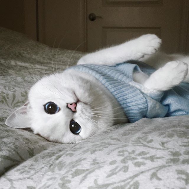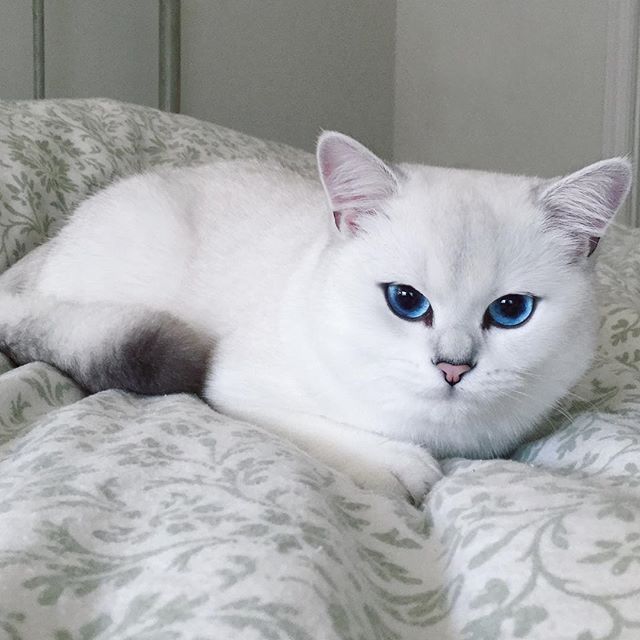 Кота на фотографиях зовут Коби. Ему повезло родиться с идеально белой шерсткой и невероятно красивыми голубыми глазами. Дополнительный эффект его взгляду придают природные черные "стрелки" вокруг глаз. Его глаза уже покорили тысячи людей, которые стали подписчиками инстаграма, заведенного хозяевами кота. Не исключено что скоро их будут уже миллионы, ты только посмотри на эти глаза, они прекрасны!
