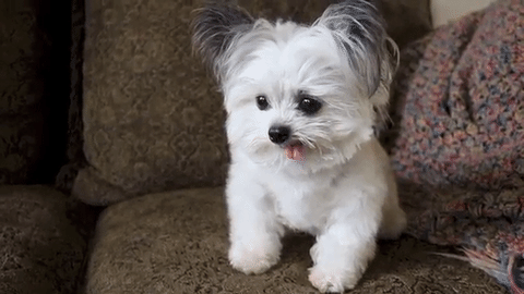 Этот маленький пушистик работает терапевтической собакой (помогает людям успокаиваться и поднимает им настроение).
