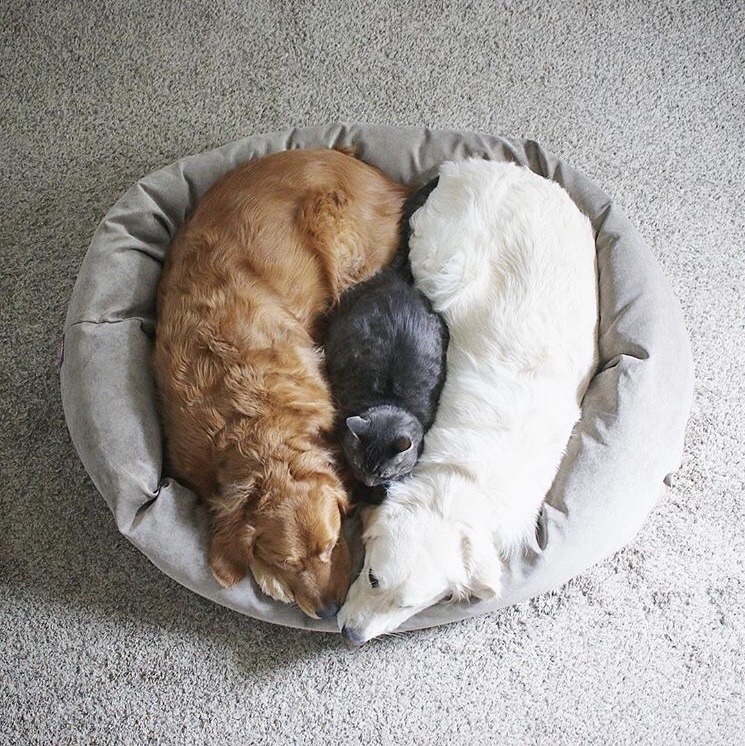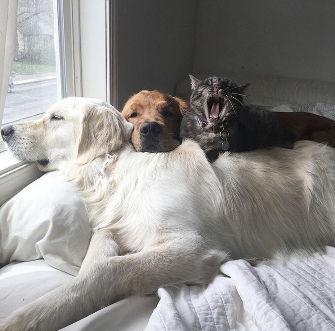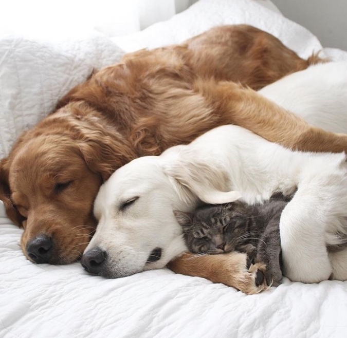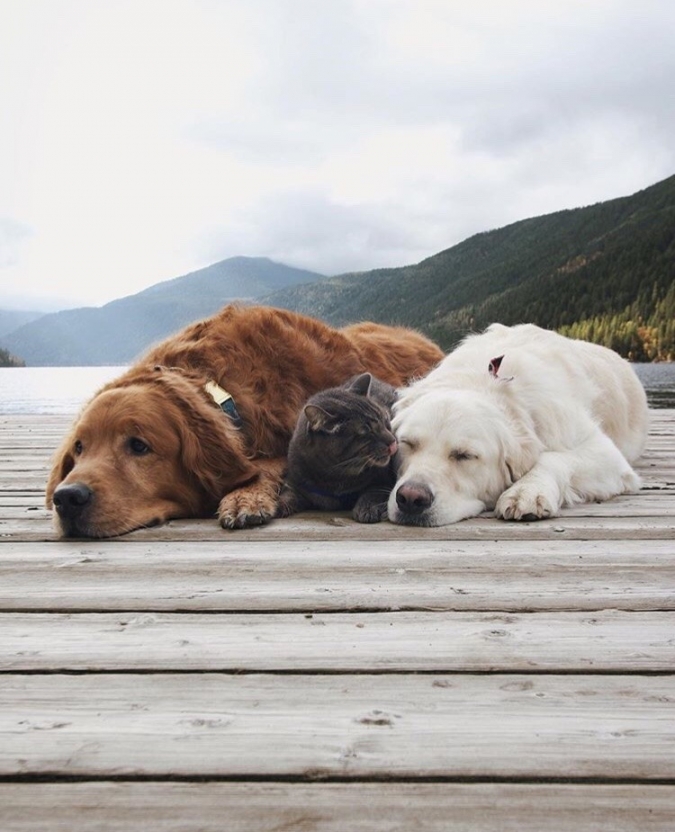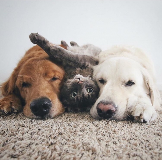 Вон она необычная настоящая дружба кота и двух золотистых ретриверов в красивых фотографиях от их хозяйки W a t s o n K i k o.