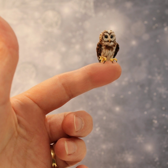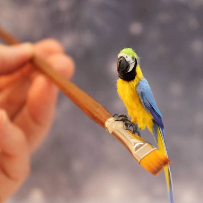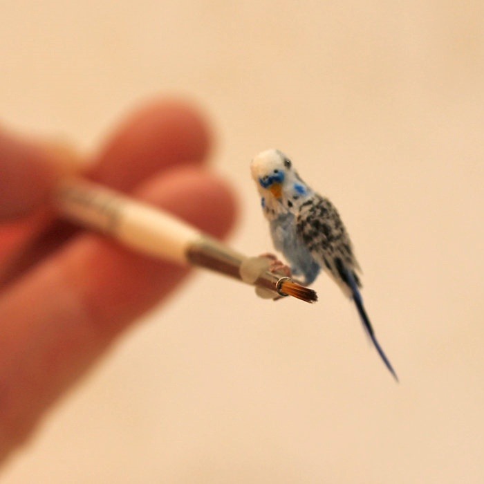 Художник по имени Katie Doka из Дании занимается созданием реалистичных миниатюр птиц формата 1:12. Многие куклы бы с радостью захотели обзавестись подобными пернатыми питомцами.