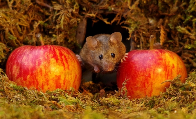 Фотограф из Британии по имени Саймон Дэлл однажды фотографировал птиц на своем участке. И неожиданно он обнаружил рядом с собой маленького мышонка, видимо пришедшего к нему на территорию за едой.