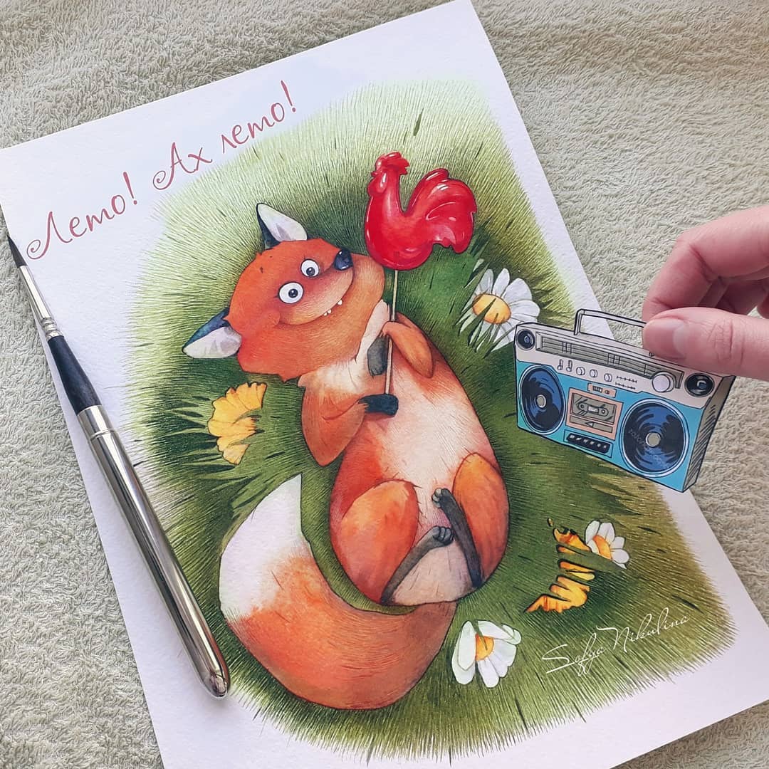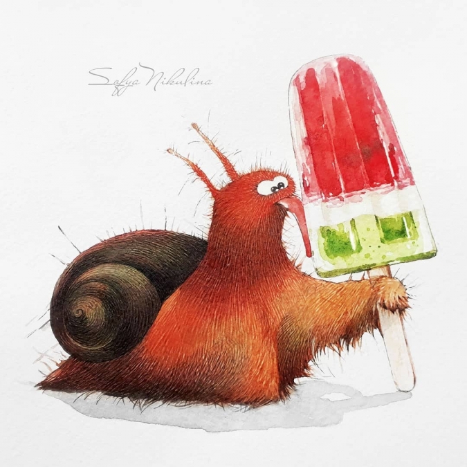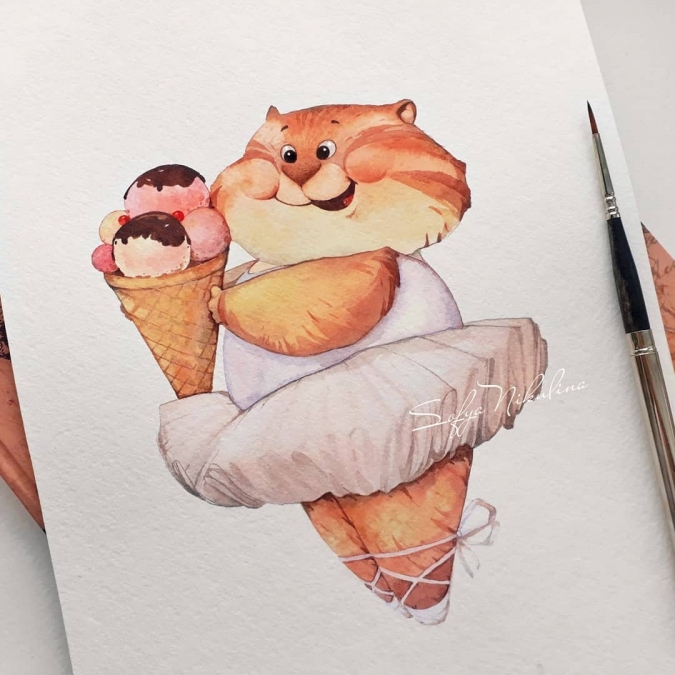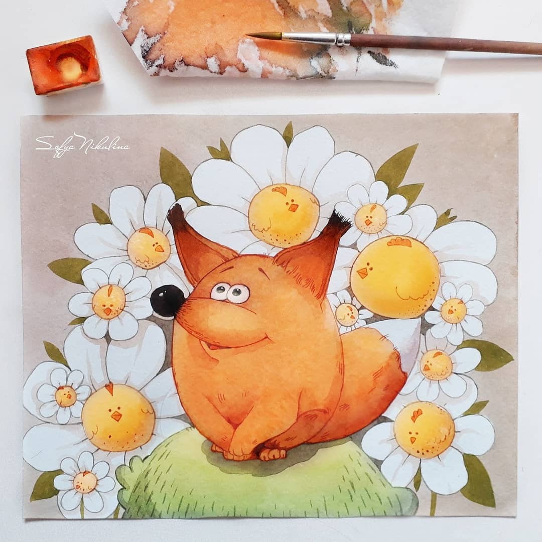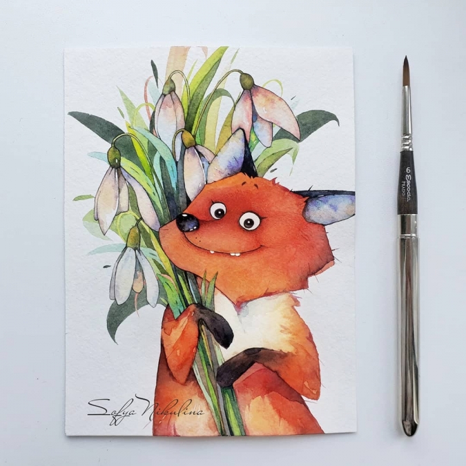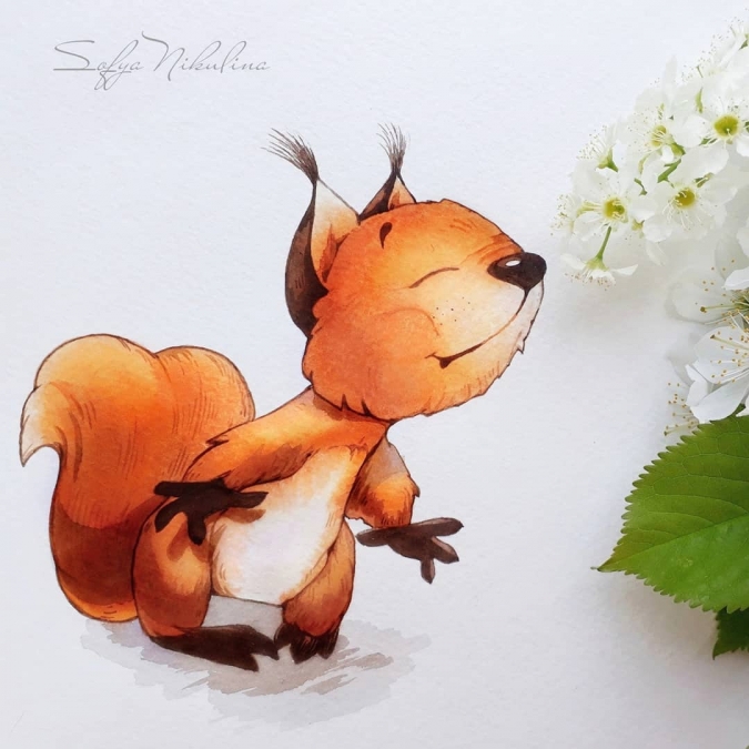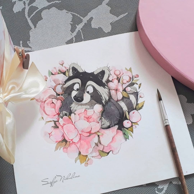 Как сама про себя пишет художник Софья Никулина -"Акварелю милых персонажей". И с этим утверждением никак не поспоришь. Акварельные рисунки Софьи невероятно милые, смешные и очаровательные. А главные персонажи в них - это еноты, коты, ёжики, белки, лисы и другие животные. Что еще нужно для хорошего настроения? (Разве что банку нутеллы как у енота?).