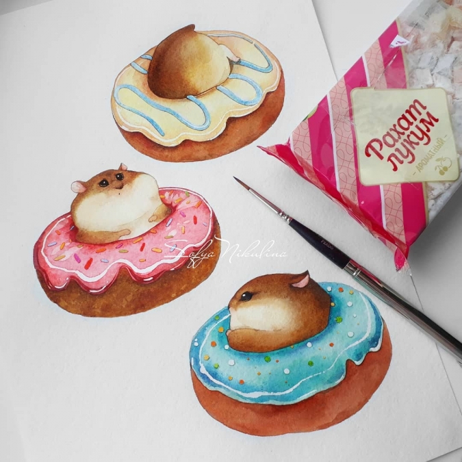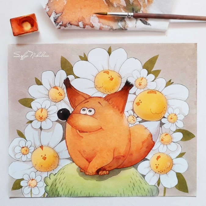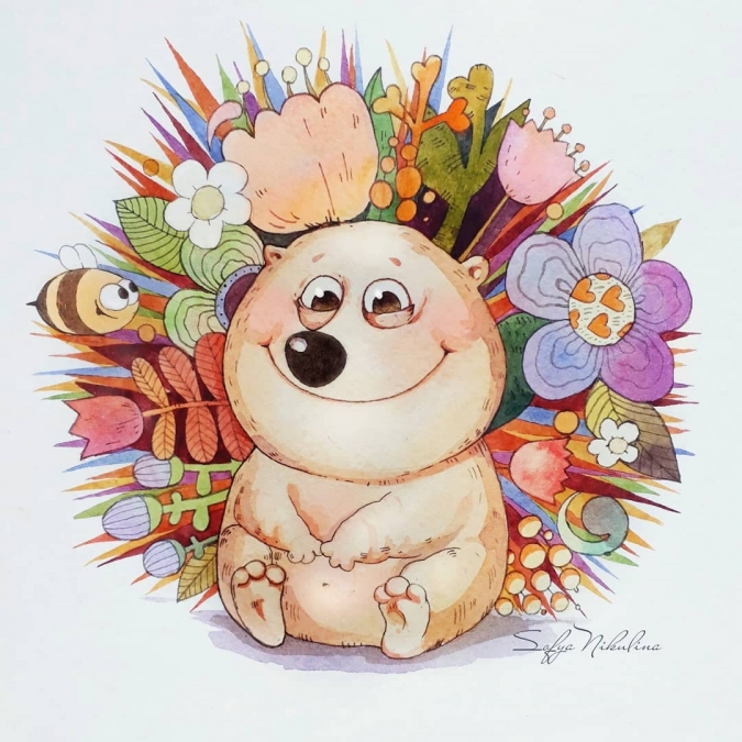 Милые персонажи в акварелях Софьи Никулиной