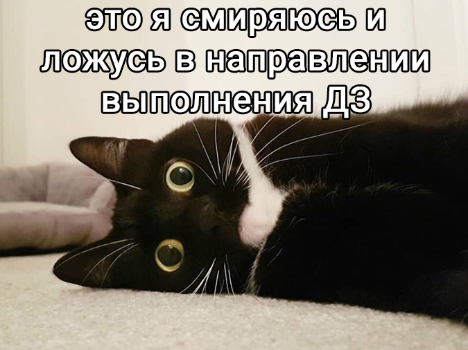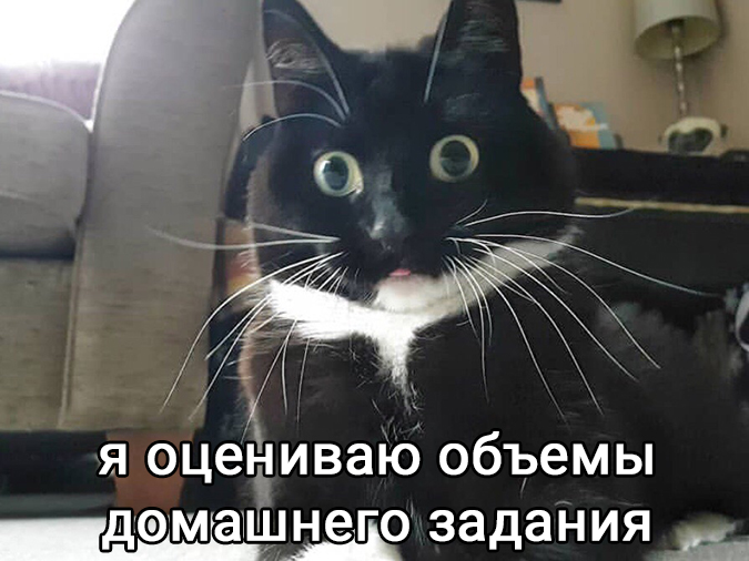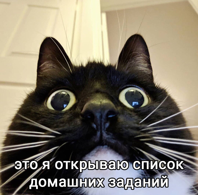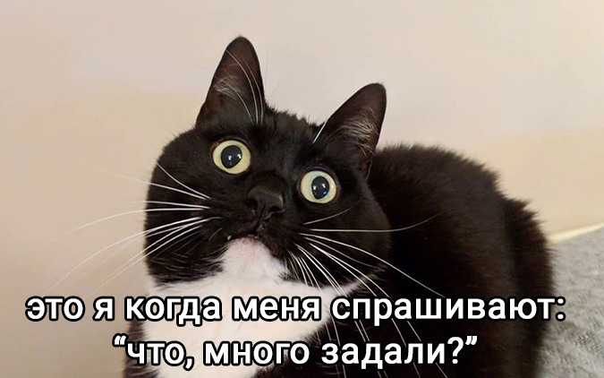 Простая задача: берем, открываем список домашних заданий на эти выходные и сравниваем свое выражение лица и смешную мордочку кошки с картинки. Похоже? Со смешными кошками