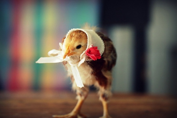 Автор всех этих фотографий: Джули Персонс (Julie Persons). Неправда ли, цыплята выглядят невероятно очаровательно в этих маленьких головных уборах?