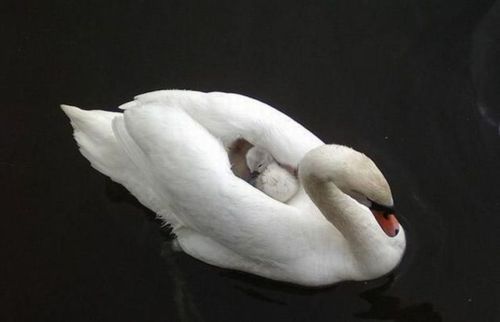 На маме кататься тепло и безопасно (для лебедей)