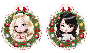 Красивые новогодние украшения: Распечатки с девочками Jolie