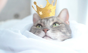 Надо видеть с каким невозмутимым видом и достоинством кошка лежит с короной на голове.