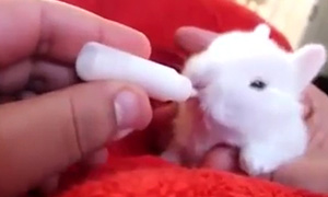 Видео с очаровательным маленьким белым кроликом, с радостью поглощающим вкусное молочко из бутылочки.