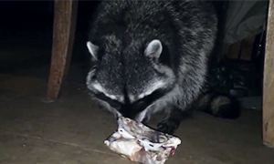 Хозяева дома в который часто заглядывают еноты, решили что зимние праздники будут не полными если они не поздравят своих постоянных гостей.