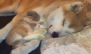 Видео, заснятое на природе, с маленькими утятами засыпающими рядом с мамой.