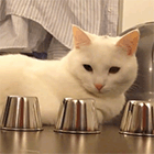 Видео с кошкой, которая охотно играет в наперстки, а самое главное угадывает нахождение шарика.