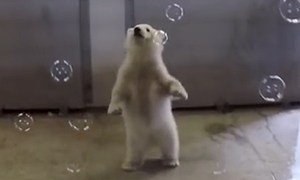 Лучший момент - это кусочек видео, на котором медвежонок ловит мыльные пузыри.