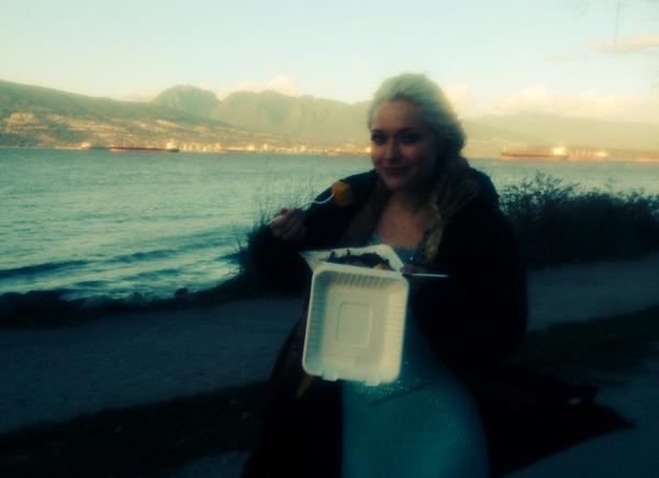 Джорджина Хэйг на съемках "Однажды в Сказке"