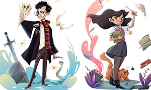 Не совсем привычный дизайн Гарри, Гермионы, Рона и других персонажей из книг про Гарри Поттера.
