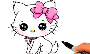Следуйте действиям в видео мастер-классе, чтобы нарисовать кошечку Charmmy Kitty.