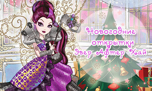 Первая порция поздравительных открыток на Новый Год с героинями Эвер Афтер Хай в бальных платьях.
