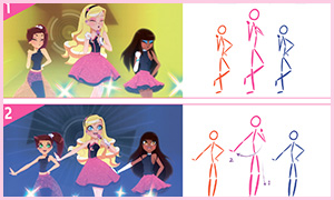 Картинка с зарисовками движений танца под песню BFF в исполнении группы ЛолиРок.