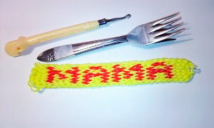 Те, кто любит плести браслеты из цветных резиночек Лум, могут сделать для мамы оригинальный подарок в виде браслета с надписью "Мама".