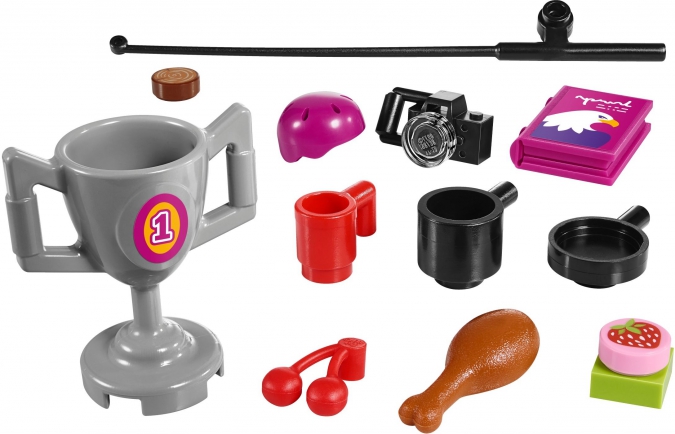 Этот набор идет с фигурками Стефани и Наоми, а также фигуркой кошки. В кафе есть отдельный стенд с кексиками, печка с открывающимися дверцами (у самого кафе двери тоже открываются), большое количество различной техники и приборов (включая миксер). Также в наборе есть детали для создания открытой зоны патио со столом и стульями. А еще для развоза заказов по городу у девочек есть скутер с корзинкой и шлем.