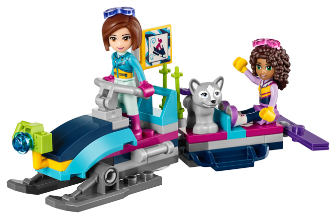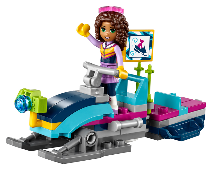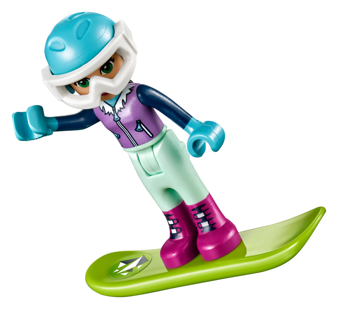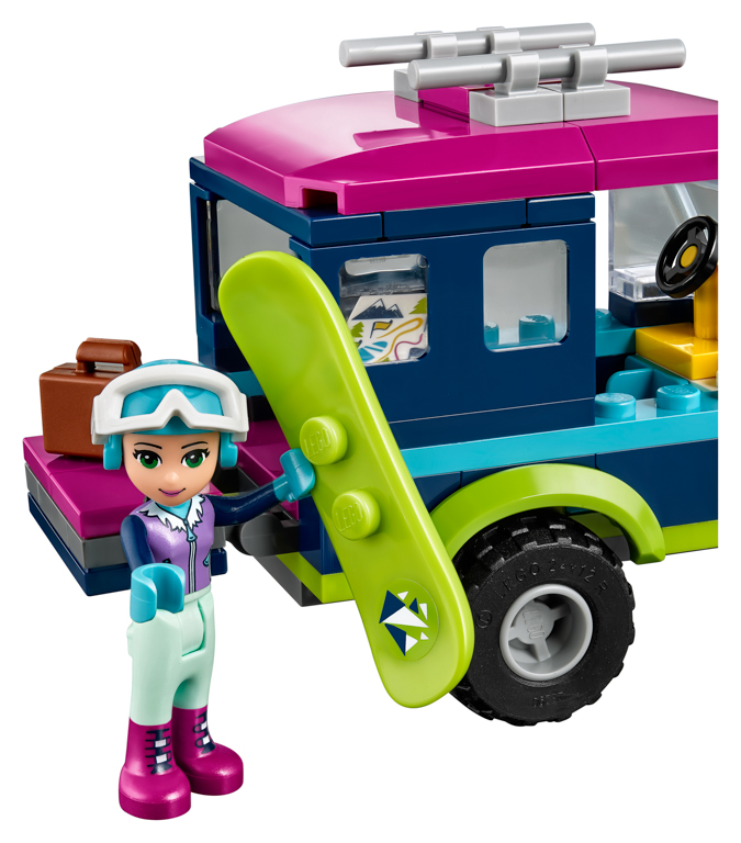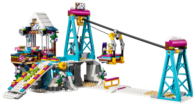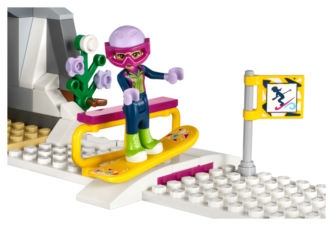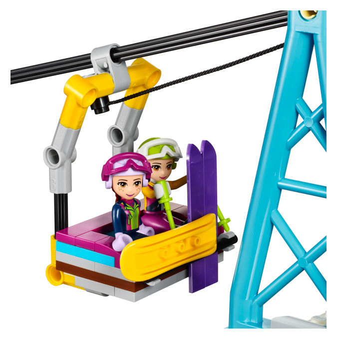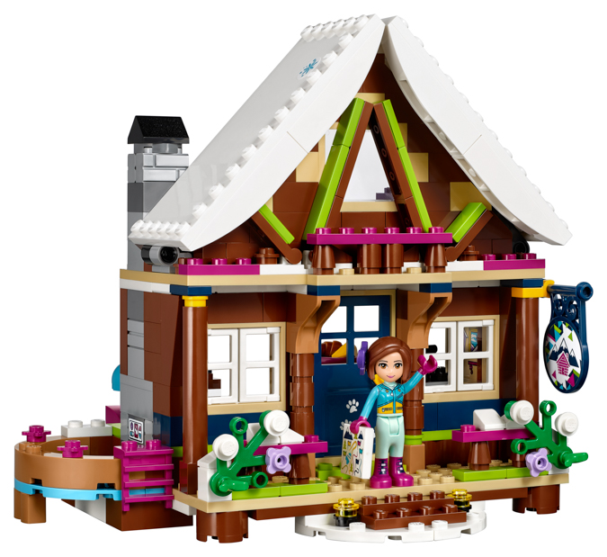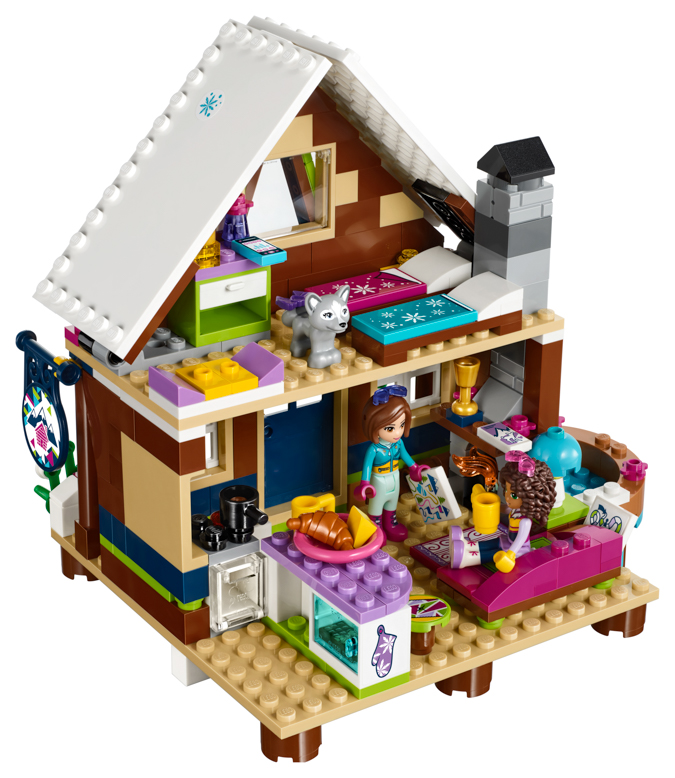Андреа и Эми собираются провести целые выходные в зимнем домике на горнолыжном курорте LEGO Friends «Горнолыжный курорт: шале». Здесь их ждет море веселья! Подружки покатаются на снегоходе и отдохнут в джакузи на открытом воздухе, а потом – вместе приготовят обед на кухне. Вечером они соберутся у камина, где уже греется щенок Хаски, и обсудят свои впечатления от прошедшего дня. Наболтавшись подружки отправятся наверх, чтобы выспаться перед следующим зимним днем, полным веселья.