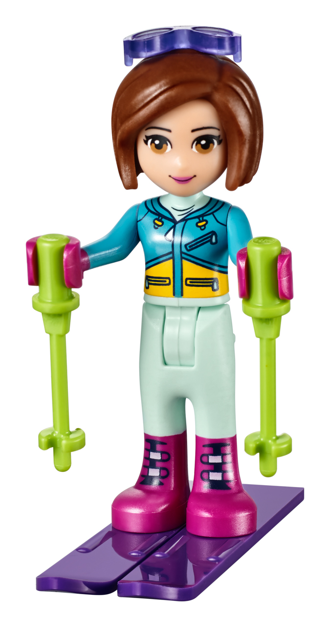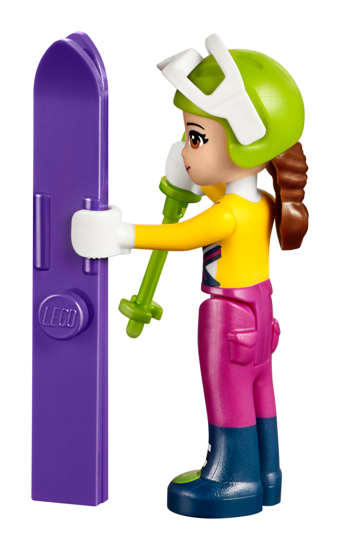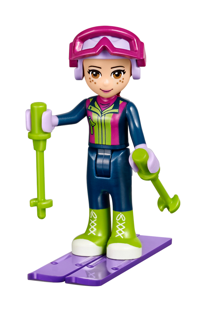 Мия и Оливия хотят попасть на самую вершину горы! Они садятся на подъемник LEGO Friends «Горнолыжный курорт: подъемник» и наслаждаются интересной поездкой. Наверху подружки зайдут в ресторан, где закажут чашечку горячего шоколада и кусочек вкусного пирога. А какой открывается отсюда вид! Отдохнув, девушки надевают лыжи и скатываются со склона горы. Неподалеку они встречают милого медвежонка, у которого тоже есть своя горка! Юные спортсменки проверяют по карте, не пропустили ли они что-то интересное. И правда – они совсем забыли о скалолазании!