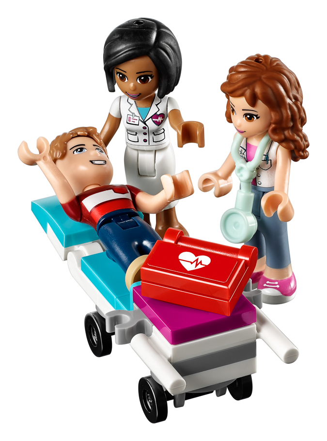 В большой трехэтажной клинике Хартлейк-Сити «Клиника Хартлейк-Сити» постоянно кипит жизнь! Отсюда отправляются вертолеты и машины скорой помощи за теми, кто попал в чрезвычайную ситуацию. А в кабинетах много разного оборудования для диагностики – например, с помощью рентгеновского аппарата врачи проверяют, нет ли у пациентов переломов. Готовые снимки доктор берет в смотровую комнату, чтобы хорошенько их изучить. А в специальном отделении больницы медсестры ухаживают за новорожденными. Им, конечно же, помогает Оливия, она ведь так любит науку и всегда готова позаботиться о других!