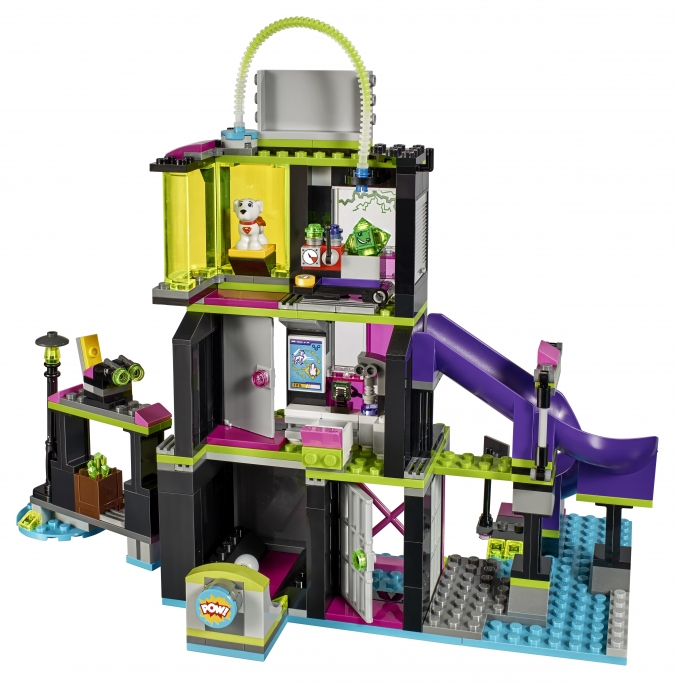 Только не это! Лена Лютор схватила Крипто! Она отвезла его в секретную лабораторию в бухте и хочет забрать его суперспособности для создания маленьких коварных Криптомитов (набор LEGO DC Super Hero Girls «Фабрика Криптомитов Лены Лютор», арт. 41238). Супергёрл нужно добраться до фабрики, чтобы спасти Крипто и сорвать планы Лены Лютор. Главное – быть осторожной. Ведь на крыше притаился синий Криптомит и стреляет оттуда, а Лена Лютор пытается сбежать с уже новыми Криптомитами. Надо поймать её, пока она не скрылась из виду!