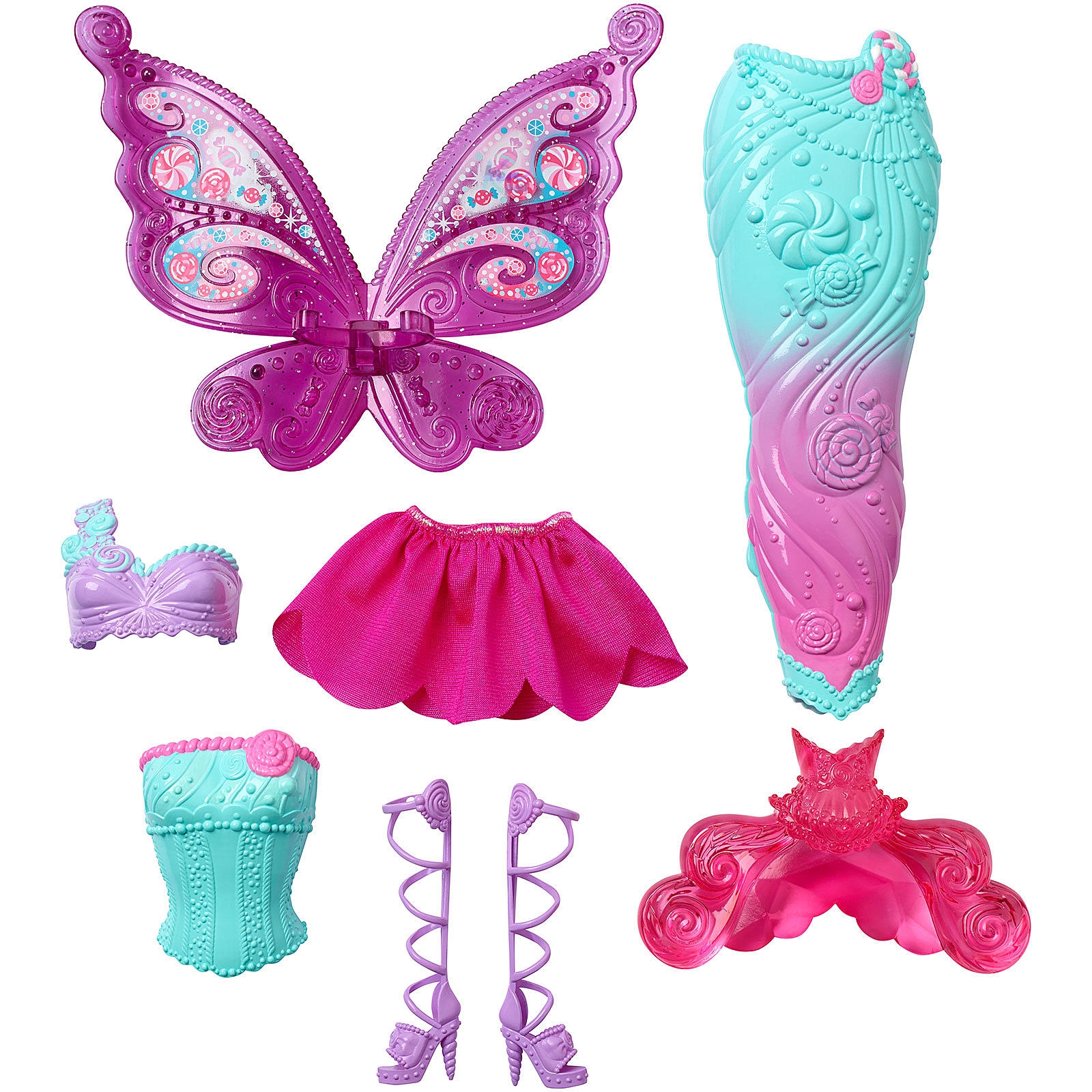 Еще одна интересная коллекция кукол Барби из серии Фантазия - Барби 3 в одной. Барби в этом выпуске может быть и принцессой и феей, и даже русалкой. Для этого в комплекте с куклой идет целый набор аксессуаров, включая хвост русалочки.