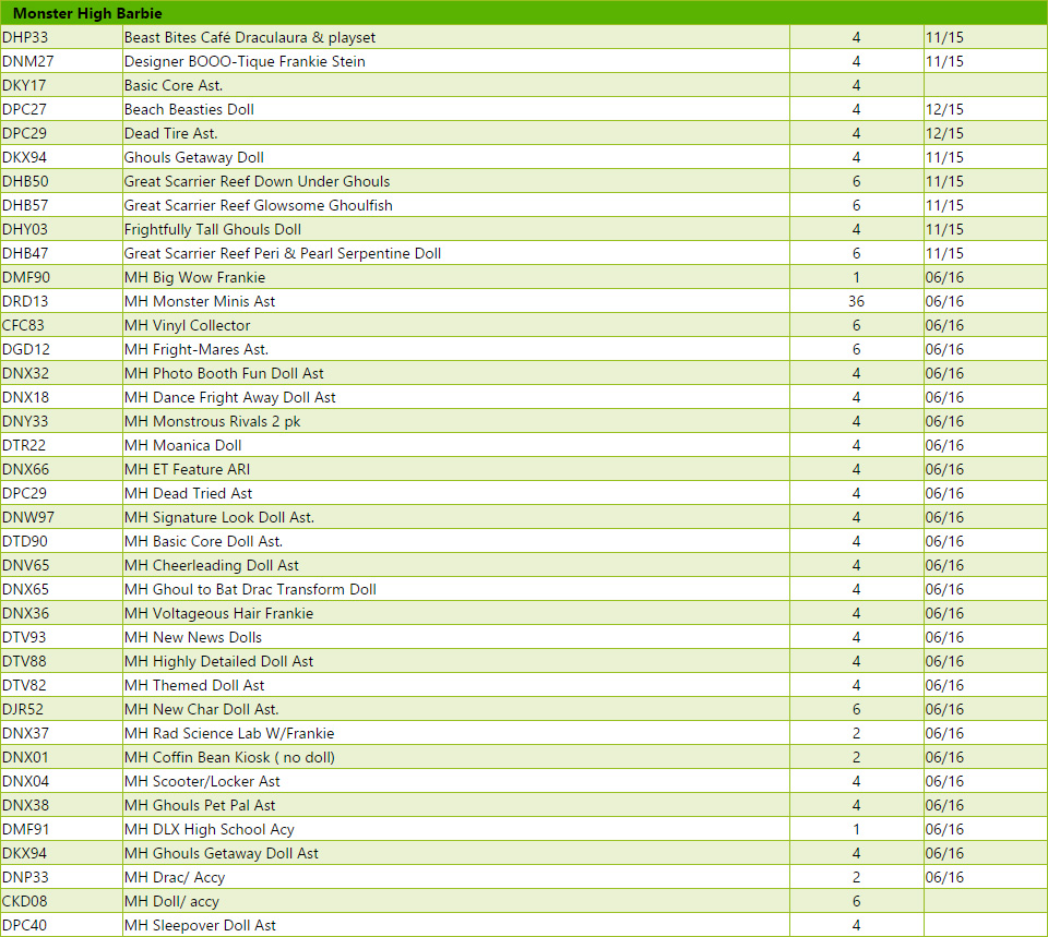 Новые куклы Монстер Хай 2015 - 2016: Список выпусков