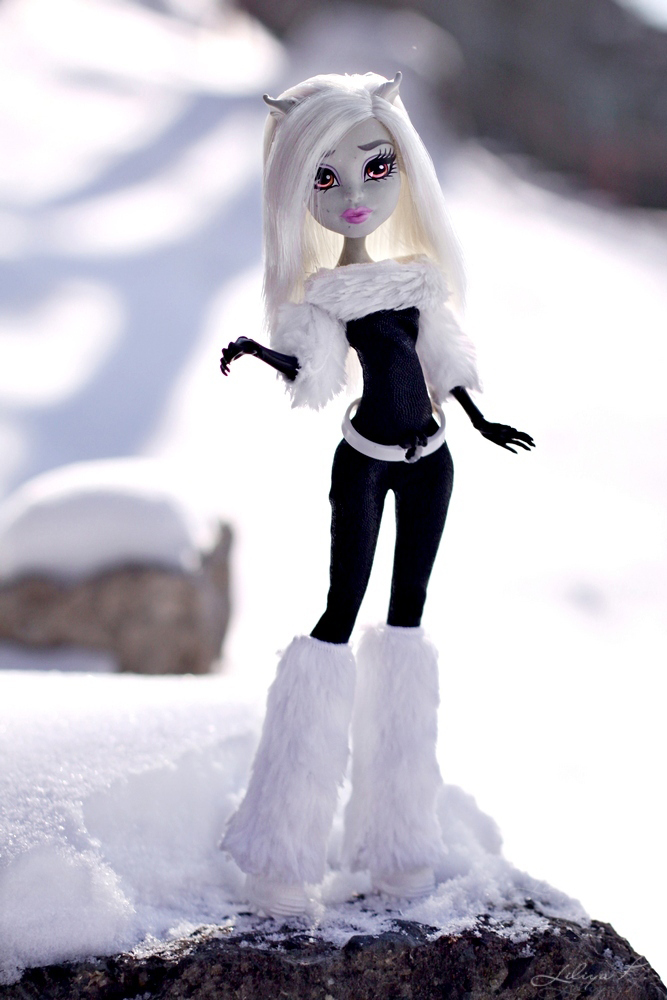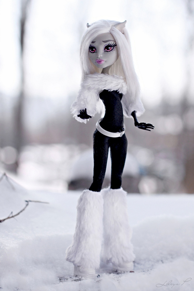 Многие из вас уже видели не один пример кастомизированных кукол. Талантливые художники и дизайнеры (и не только Монстр Хай) перерисовывают куклам лица, перепрошивают волосы, шьют новые наряды и делают новые прически, создавая новые уникальные образы. Сегодня мы бы хотели с вами поделится фотографиями невероятно красивой кастомизированной куклы Рошель Гойл. На этих фотографиях она просто настоящая зимняя красавица. И как же ей идут эти белые волосы и этот черно-белый наряд!