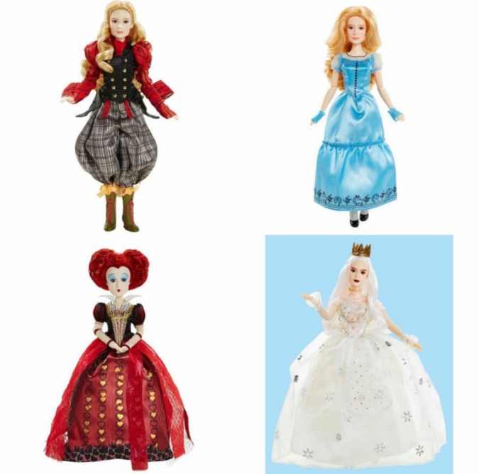 Стали доступны первые изображения новых кукол по фильму "Алиса в Зазеркалье" Тима Бертона. Производством этих кукол займется компания Jakks Pacific. И с учетом скорой премьеры фильма, куклы тоже должны начать появляться в магазинах.