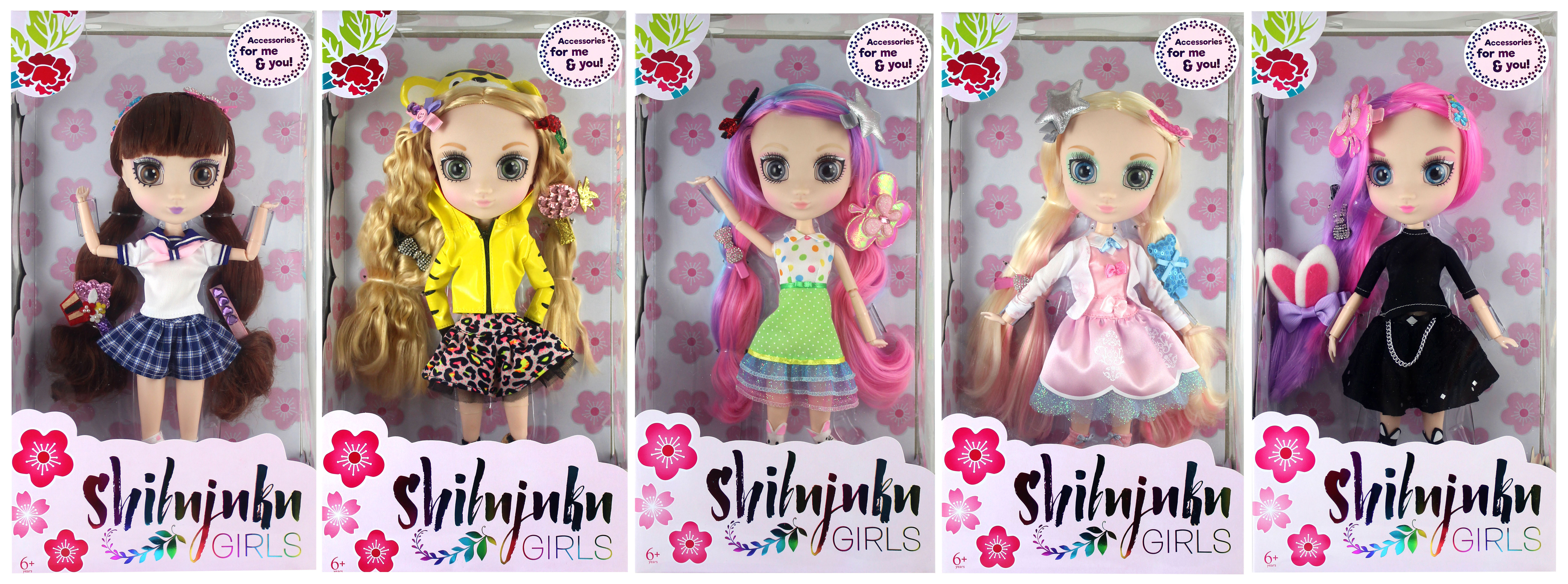 Куклы Shibajuku Girls впервые были представлены на выставке игрушек 2016 года. Название коллекции представляет собой совмещение двух самых модных районов Японии Shibuya и Harajuku. Дизайнер кукол не скрывает что вдохновением для нее как раз служила современная японская мода для девочек и девушек. Эти куклы немного крупнее обычных фэшн кукол, у них очень пышные волосы, есть артикуляция и главная отличительная особенность это аксессуары для волос, идущие вместе с каждой куклой. Также у кукол вставные стеклянные глаза и накладные реснички, так что глаза у них не нарисованные. Все резиночки и заколки каждая девочка сможет так же надевать на свои волосы.