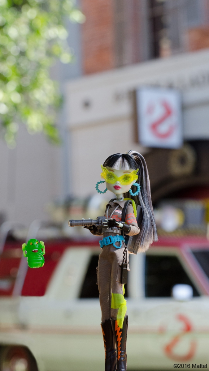 В новом фильме про охотников за приведениями все главные героини девушки, поэтому в Маттел решили что будет здорово для Комик Кона в 2016 году сделать эксклюзивную куклу - охотницу за приведениями. Такой охотницей станет Фрэнки Штейн, что неудивительно учитывая её способности связанные с электрическими разрядами.