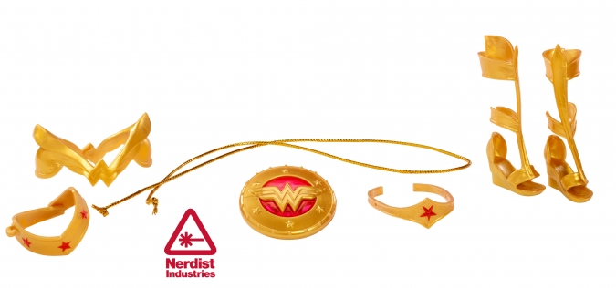 Вместе с куклой Чудо Женщины идет целая коллекция аксессуаров. Все они представлены на этой картинке.