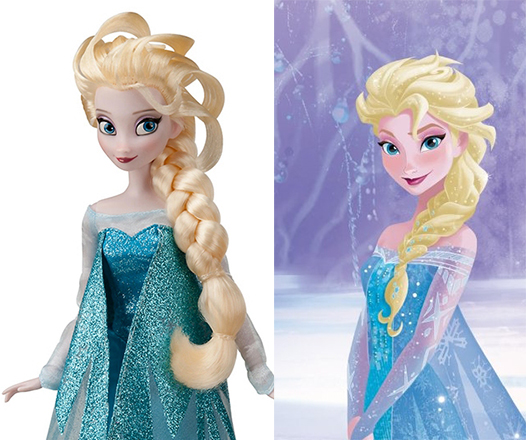 Эльза одета в свой королевский "ледяной" наряд, с тонкой накидкой с зимними узорами. Вот такую прическу точно не захочется расправлять, расчесывать и переделывать. Прическа у этой версии куклы Эльзы очень напоминает ее прическу из иллюстрации для книг.