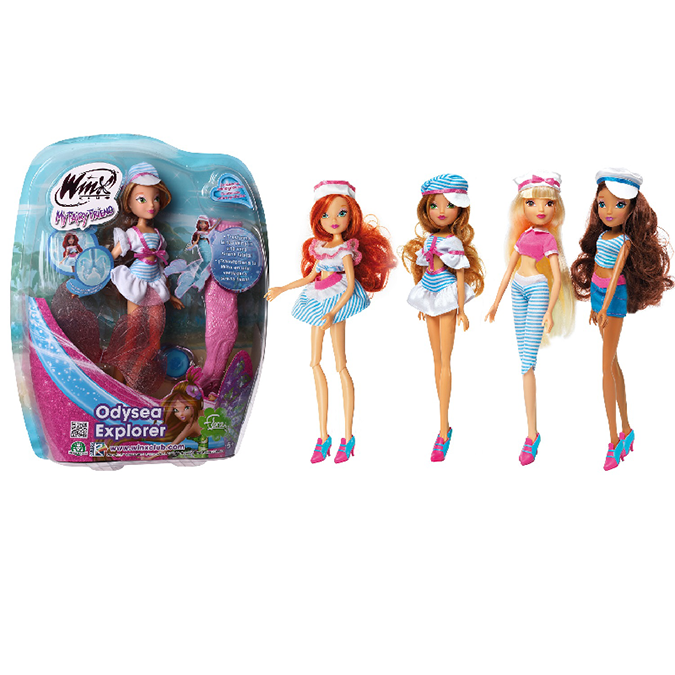 Начнем с коллекции кукол Winx Odysea Explorer, посвященную пятому сезону мультсериала. В комплекте с каждой куклой идет русалочий хвост, который можно одеть вместо юбок и обуви. Крылья можно превратить в дополнительные плавники для хвоста и Винкс превратятся в настоящих русалочек.