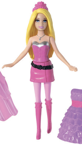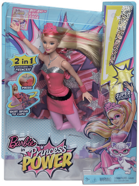 Кукла Барби Супер Принцесса. Барби Легко превращается из таинственной супер героини в прекрасную принцессу. Стоит только загнуть плащ вниз и использовать её универсальные очки-корону.
