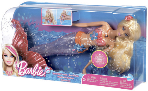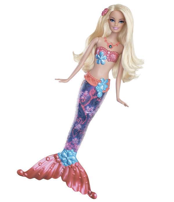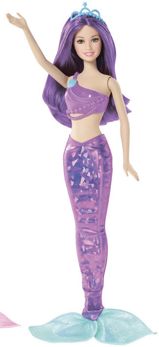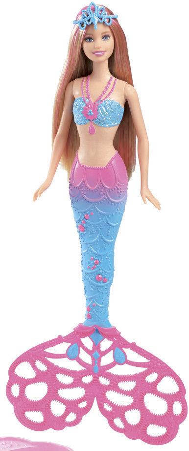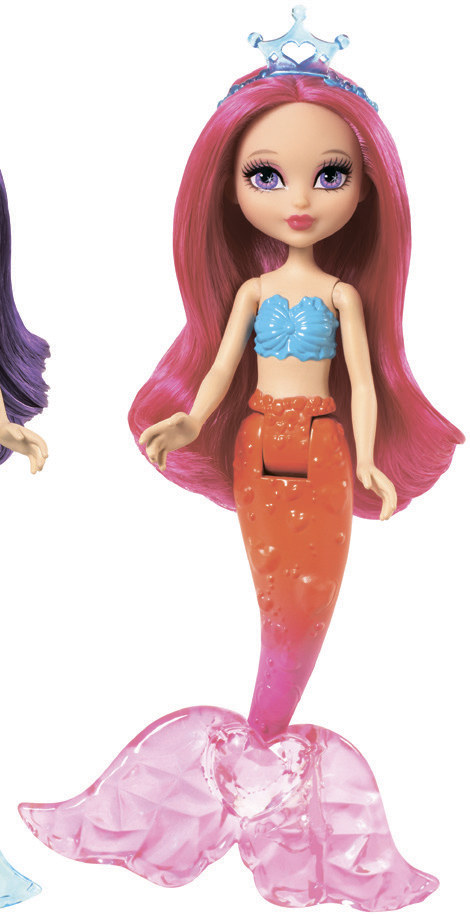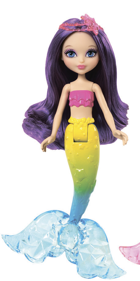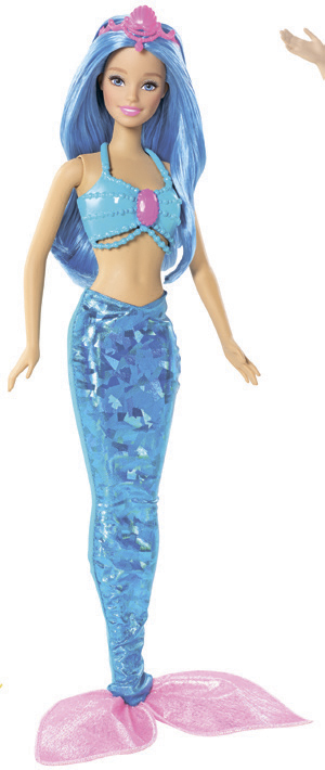 Куклы со светящимися узорами на хвостах, светится хвосты начинают от нажатия кнопки. Также этих кукол можно погружать в воду.