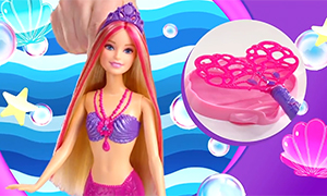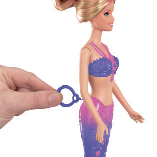 Кукла Барби русалочки с заводным механизмом. После завода кукла начнет вращать хвостом.